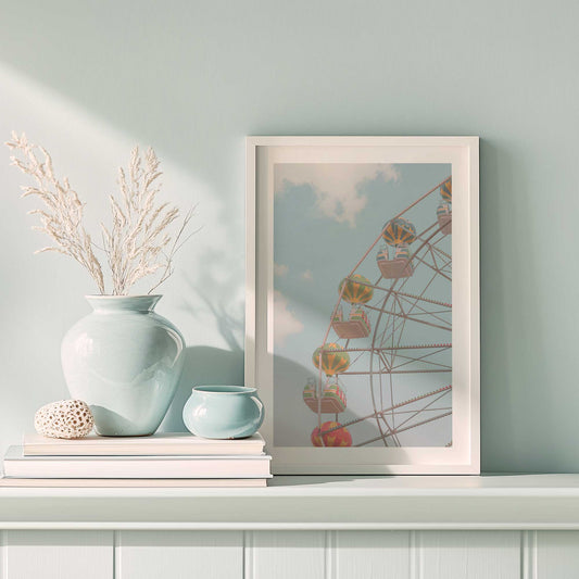 Pastel Ferris Wheel Against Blue Sky Art Print