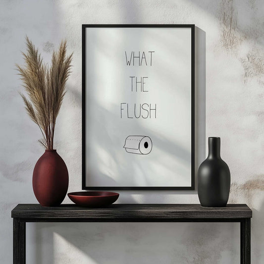 Funny Toilet Art Print with “What the Flush” Text Art Print