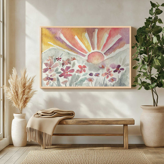 Sunrise and Wildflowers in a Dreamy Watercolor Glow Art Print