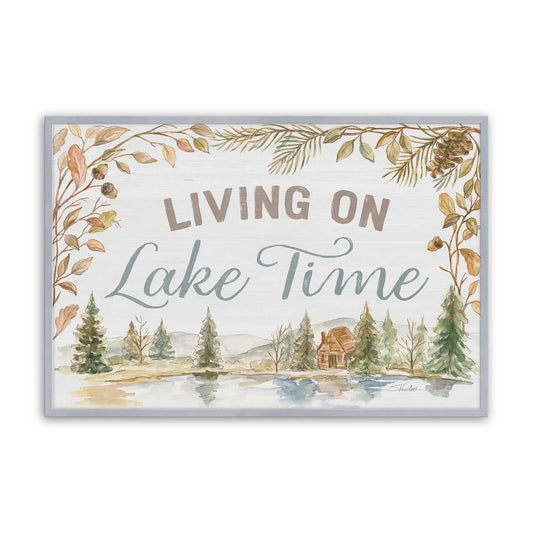 Living on Lake Time – Cozy Cabin Art with Nature Border I Paper Print
