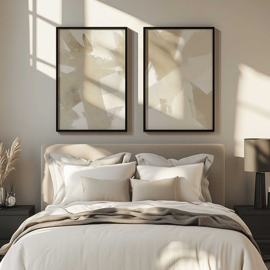 Muted Taupe Brushstroke Abstract Art Set of 2 Prints