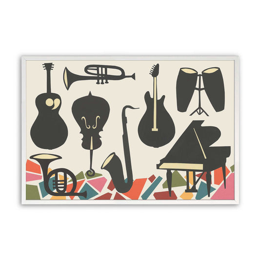Bold Black Instrument Silhouettes with Pops of Retro Color Paper Print