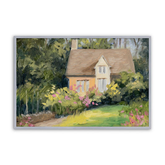 Charming Cottage Nestled in a Blooming Garden Scene Paper Print