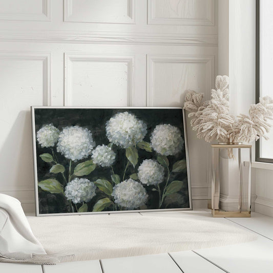 White Hydrangeas in Bloom Paper Print