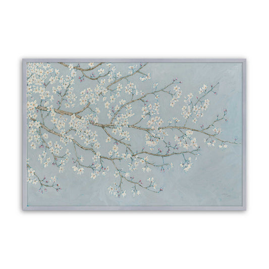 Cherry Blossom Branches on Blue Paper Print