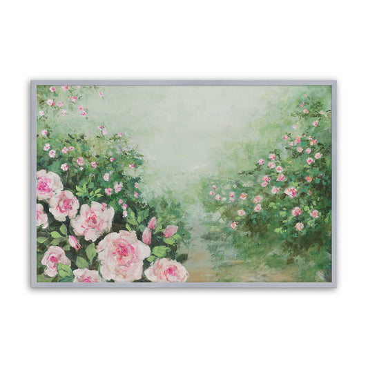 Romantic Garden Path with Pink Roses in Bloom Paper Print