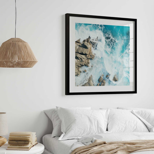 Aerial View of Waves and Shoreline in Turquoise and Sand Tones Art Print