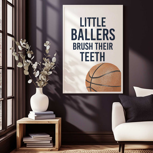 Little Ballers Brush Their Teeth Art Print