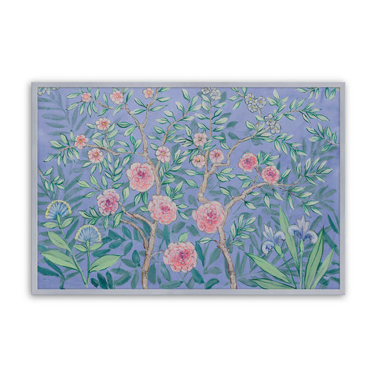 Pink Blossoms and Blue Irises on Green III Paper Print