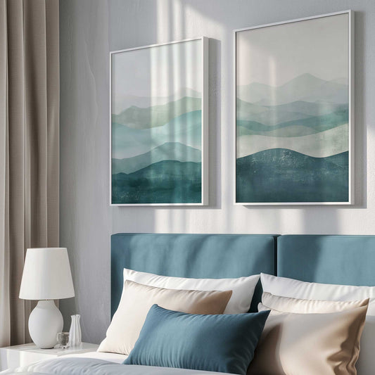 Calming Ocean Blue and Teal Mountain Duo - Set of 2 Prints