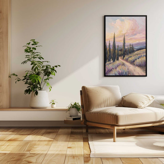 Vertical Retro Motel Sign with Pastel Sky Art Print