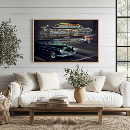 Classic Cars and Neon Nights Canvas Print