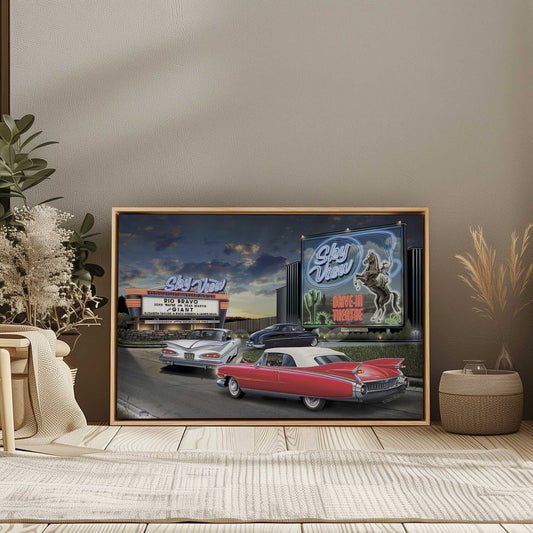 Retro Drive-In with Classic Cars Canvas Print