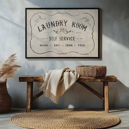 Vintage Laundry Room Self Service Sign I Canvas Print