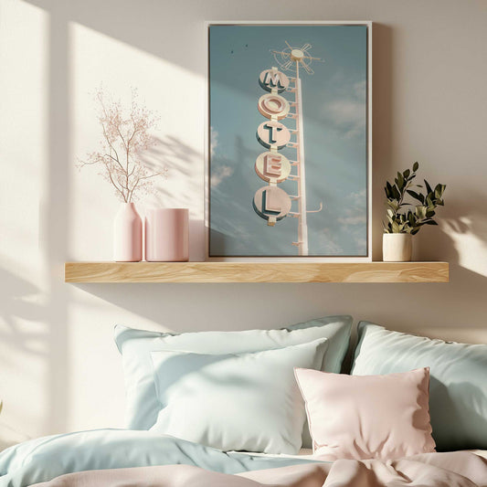 Vertical Retro Motel Sign with Pastel Sky Canvas Print