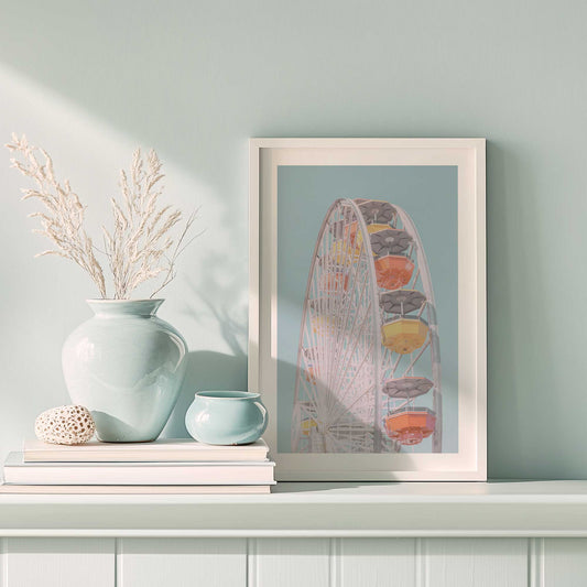 Pastel Ferris Wheel Against Blue Sky Art Print