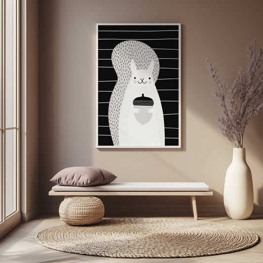 Smiling Squirrel Holding Acorn with Black and White Stripes Art Print