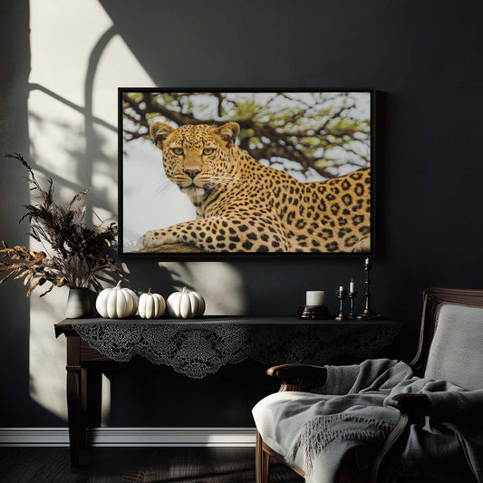 Intense Gaze of a Leopard Resting in a Tree Canvas Print