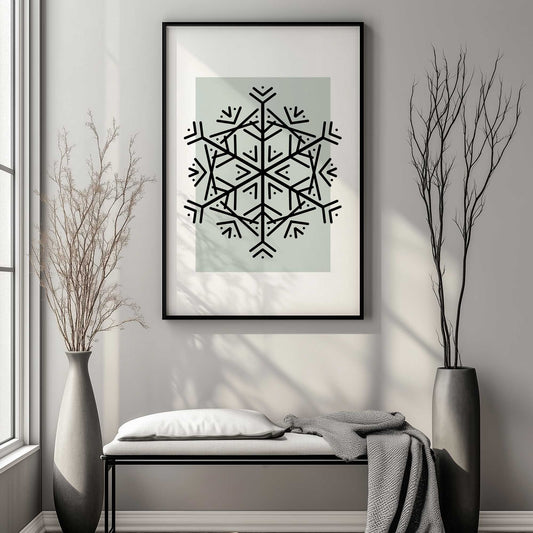 Bold Geometric Snowflake on Soft Sage Green Art Print