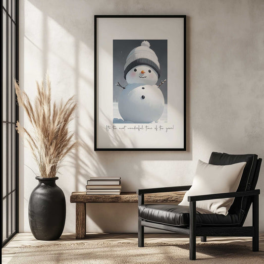 Smiling Snowman in Knit Hat with Holiday Quote Art Print